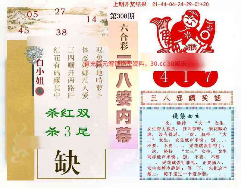 308期:平特一尾『666尾』开:猴46准